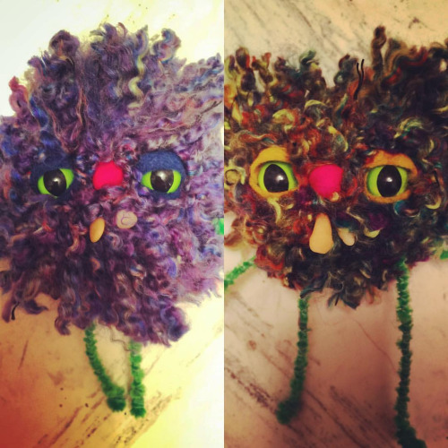 BeelzeBuddies are made of yarn and felt with clay teeth and safety eyes. They have been sewn and needle felted into life, much like a voodoo doll, but can still be somewhat delicate in their play, so no cats (or babies)…they hate cats.